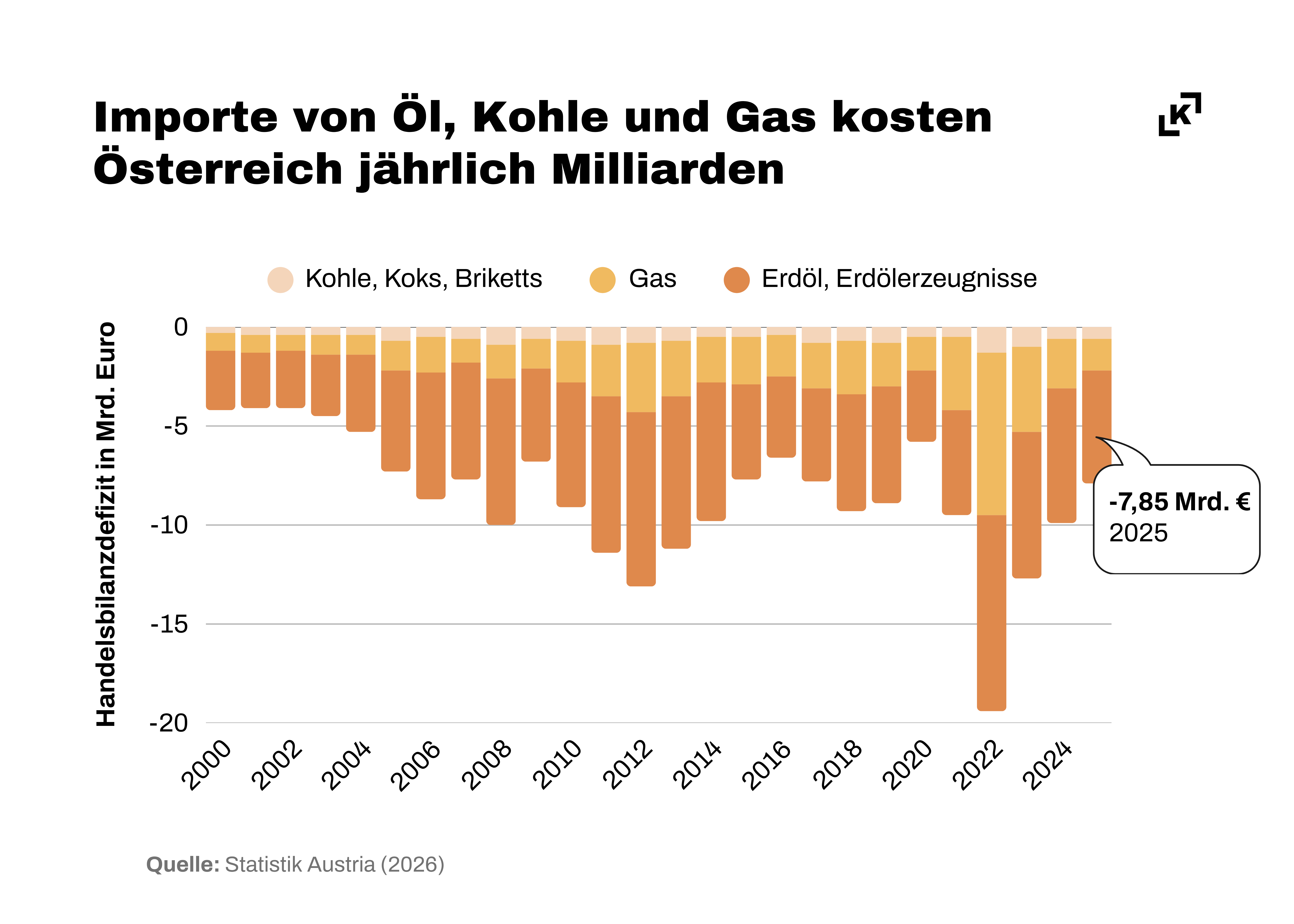 Alle diese Maßnahmen haben positive konjunkturelle Effekte – ganz im Gegensatz zu den Importen von fossilen Energieträgern. 2025 beliefen sich diese Höhe dieser Importe auf 7,85 Milliarden Euro. 2022, im Jahr des russischen Überfalls auf die Ukraine, lag dieser Wert bei 19,45 Milliarden Euro. Dieses Geld, das Österreich jährlich für Öl und Gas an autokratische Regime überweist, fließen ohne jegliche Wertschöpfung für die heimische Wirtschaft ab. Die Ökologisierung senkt dagegen die Energiekosten für Haushalte dauerhaft, füllt die Auftragsbücher von Handwerk:innen und hilft der Industrie zu neuer Wettbewerbsfähigkeit.
