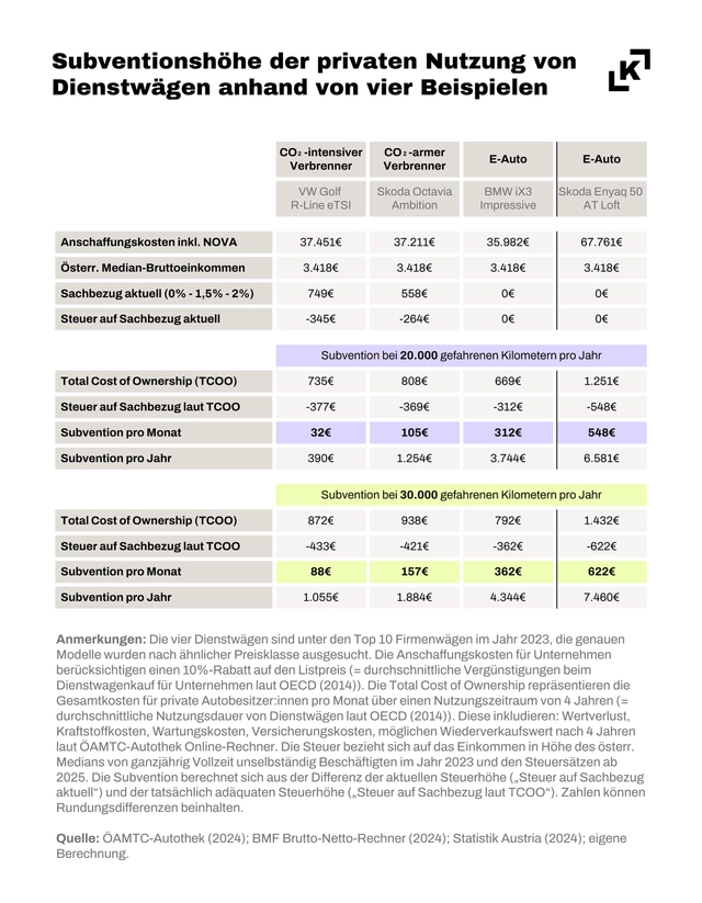 Mit einem gestaffelten Steuersatz für E-Autos (0,5 Prozent für effiziente, 1 % für weniger effiziente Modelle) wird ein Anreiz für besonders energieeffiziente Fahrzeuge geschaffen. Zusätzlich wird ein betriebliches Mobilitätsbudget steuerlich begünstigt, das Beschäftigten ermöglicht, emissionsfreie Alternativen wie öffentliche Verkehrsmittel, E-Carsharing oder Fahrräder zu nutzen.