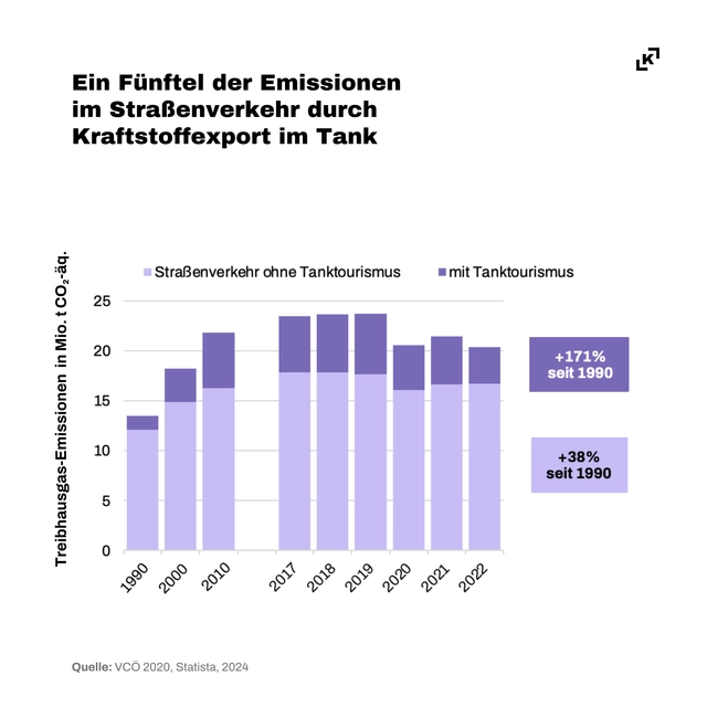 Die steuerliche Begünstigung von Diesel gegenüber Benzin, kurbelt den Tanktourismus an, belastet den Staatshaushalt und gefährdet die österreichischen Klimaziele für 2030.