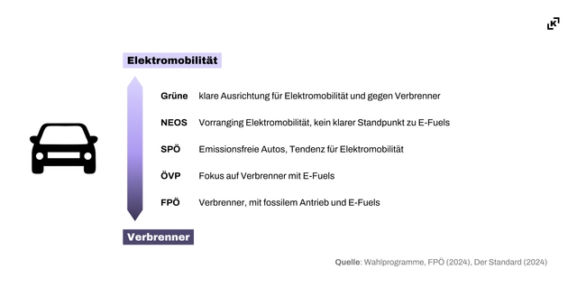 Im Vergleich dazu ist von einer Koalition aus ÖVP, SPÖ und Grüne wohl ein stärkerer Fokus auf den Umbau der Industrie und die notwendige Elektrifizierung zu erwarten. Zudem würden sich die Grünen voraussichtlich stärker als die NEOS gegen weitere Förderungen von E-Fuels im Individualverkehr einsetzen. Dadurch könnte die Verkehrswende in der Koalition effizienter ablaufen.