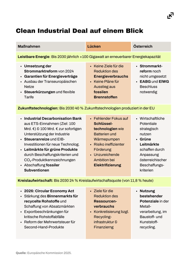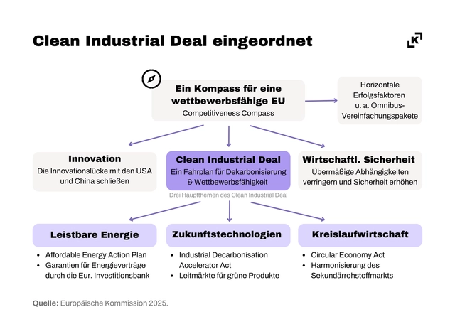 - Clean Industrial Deal erkennt die richtigen Handlungsfelder, bietet aber nur vereinzelt neue Antworten.