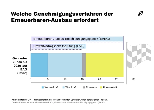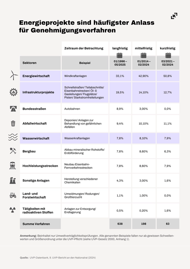 Obwohl das entsprechende Gesetz maximale Fristen von sechs bis neun Monaten im Energiebereich vorsieht, liegt die tatsächliche mittlere Dauer von Umweltverträglichkeitsprüfungen bei über 22 Monaten. Die Ursachen für die Verzögerungen sind vielfältig, aber selten auf eine Akteursgruppe oder das Verfahren selbst zurückzuführen. Vielmehr sind es meist strukturelle Defizite, wie unvollständige Unterlagen seitens der Projektwerbenden, personeller Ressourcenmangel in Landesbehörden, fehlende Flächen und Koordination der Bundesländer, sowie mangelnde öffentliche Akzeptanz, die den Verfahrensprozess in die Länge ziehen. Diese Problemfelder lassen sich beheben – wenn die richtigen Maßnahmen gesetzt werden: